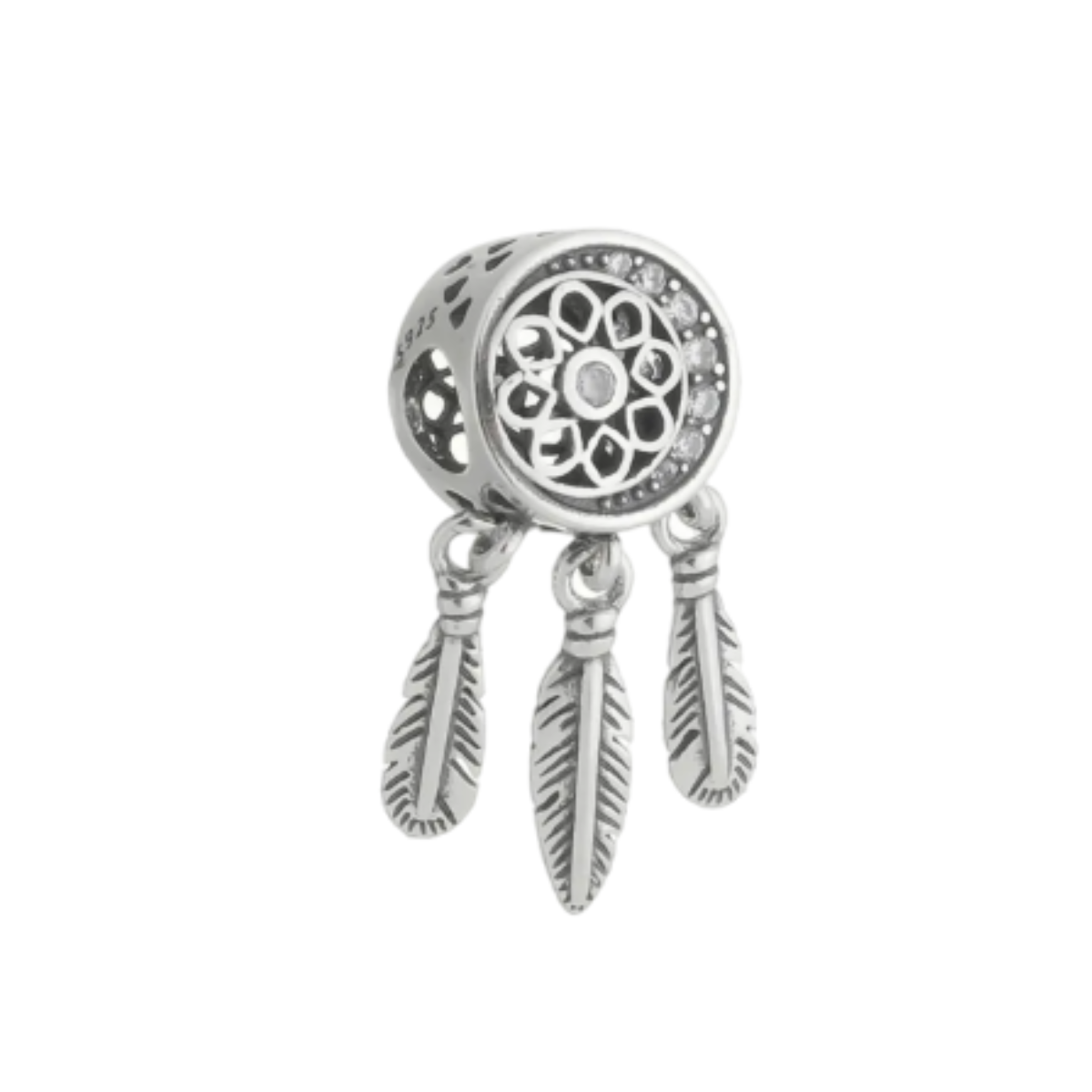 Berloque Separador Filtros dos Sonhos Com 3 Penas Prata 925 Legítima