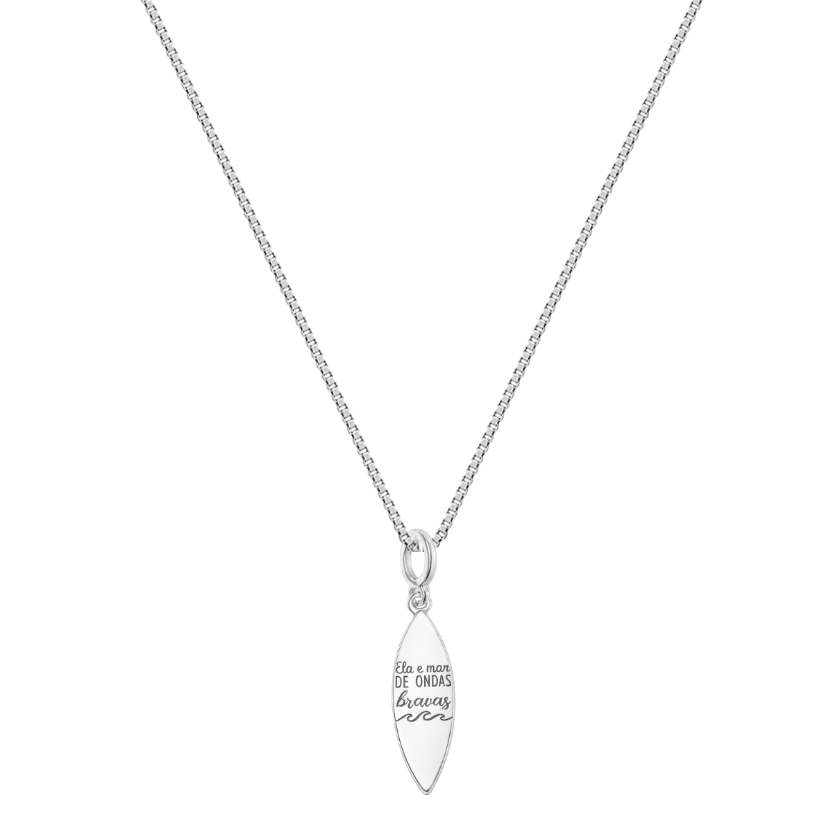 O Colar Prancha com a frase “Ela é mar de ondas bravas” é perfeito para quem carrega intensidade, coragem e espírito livre. Inspirado no universo do mar e do surf, o pingente transmite a essência de mulheres fortes e autênticas. Confeccionado em Prata 925 legítima, possui acabamento refinado e brilho elegante para acompanhar você em todos os momentos.