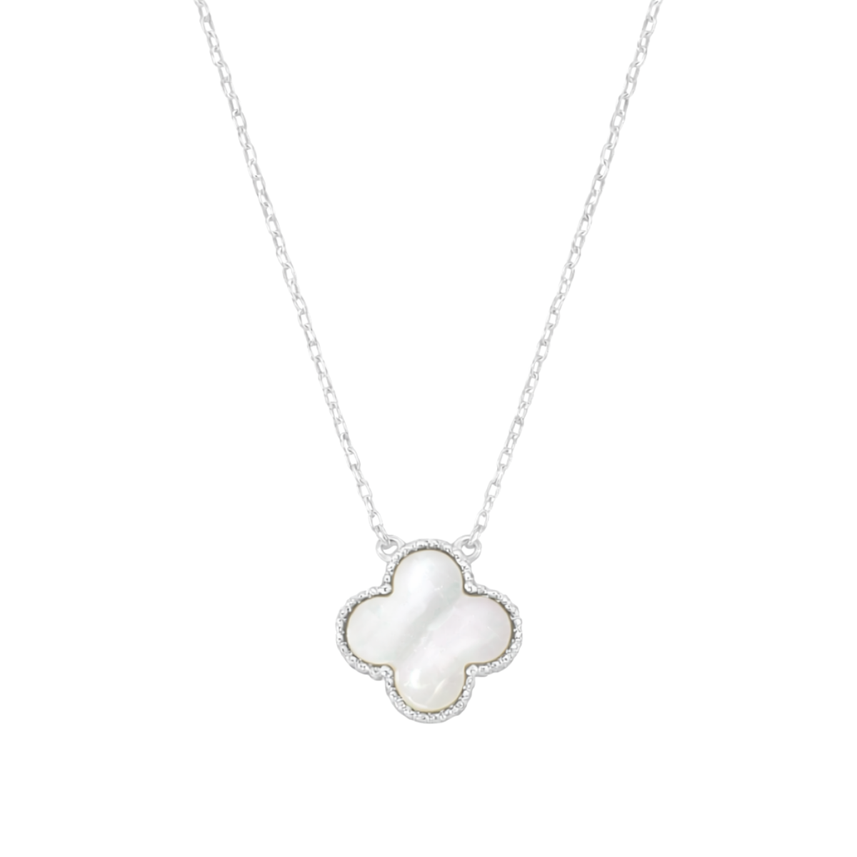 O Colar Trevo com Madrepérola é uma peça sofisticada que combina o brilho suave da madrepérola com o simbolismo do trevo, conhecido por representar sorte, prosperidade e boas energias. Confeccionado em Prata 925 legítima, possui acabamento refinado e design delicado, perfeito para complementar qualquer look com charme e elegância.