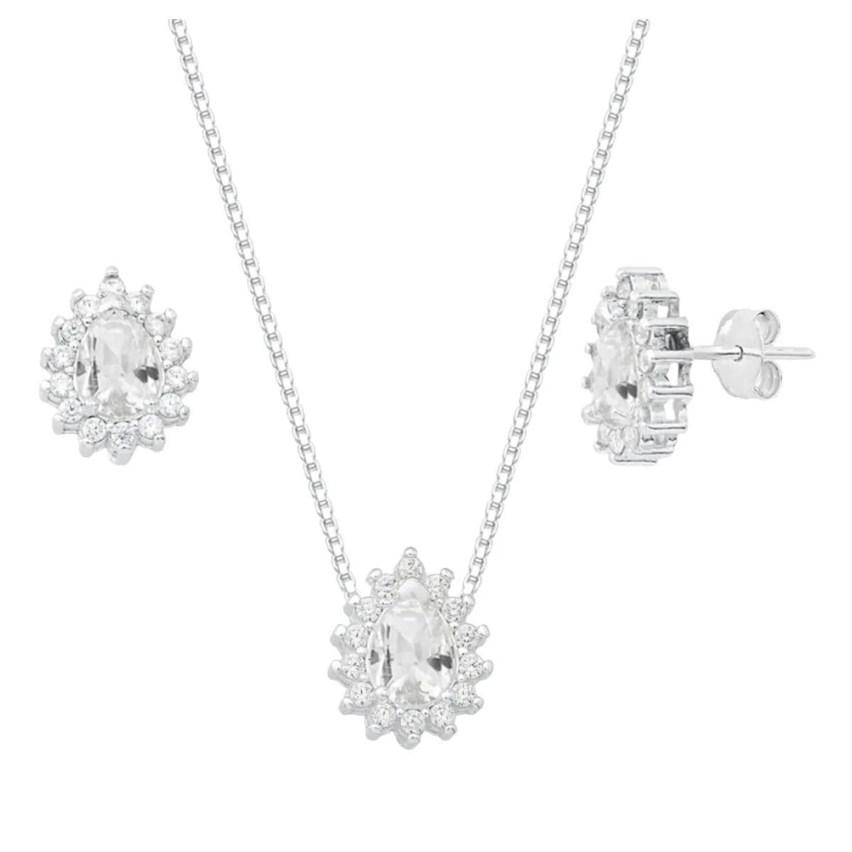O Conjunto Gota Galeria é confeccionado em Prata 925 legítima e apresenta deslumbrantes zircônias brancas em formato de gota, delicadamente emolduradas por bordas cravejadas. Um design sofisticado que une brilho intenso e requinte, perfeito para iluminar suas produções.