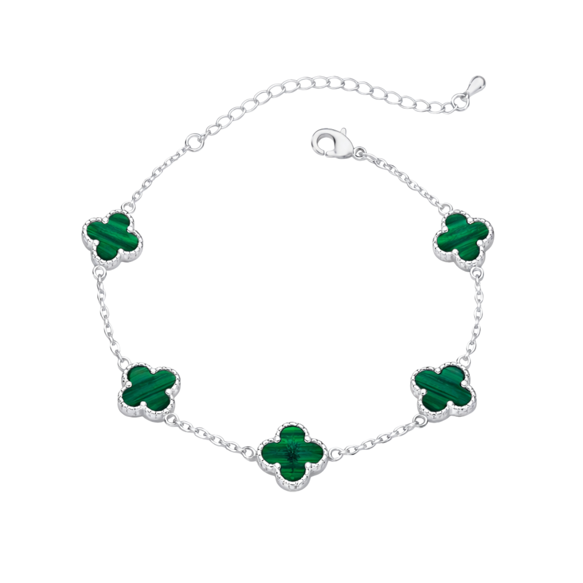 A Pulseira Feminina com 5 trevos de malaquita é uma peça encantadora que une estilo e simbolismo. O trevo, conhecido por representar sorte e prosperidade, ganha destaque com a pedra malaquita, famosa por seu tom verde marcante e suas variações naturais únicas. Confeccionada em Prata 925 legítima, garante qualidade, durabilidade e acabamento refinado.