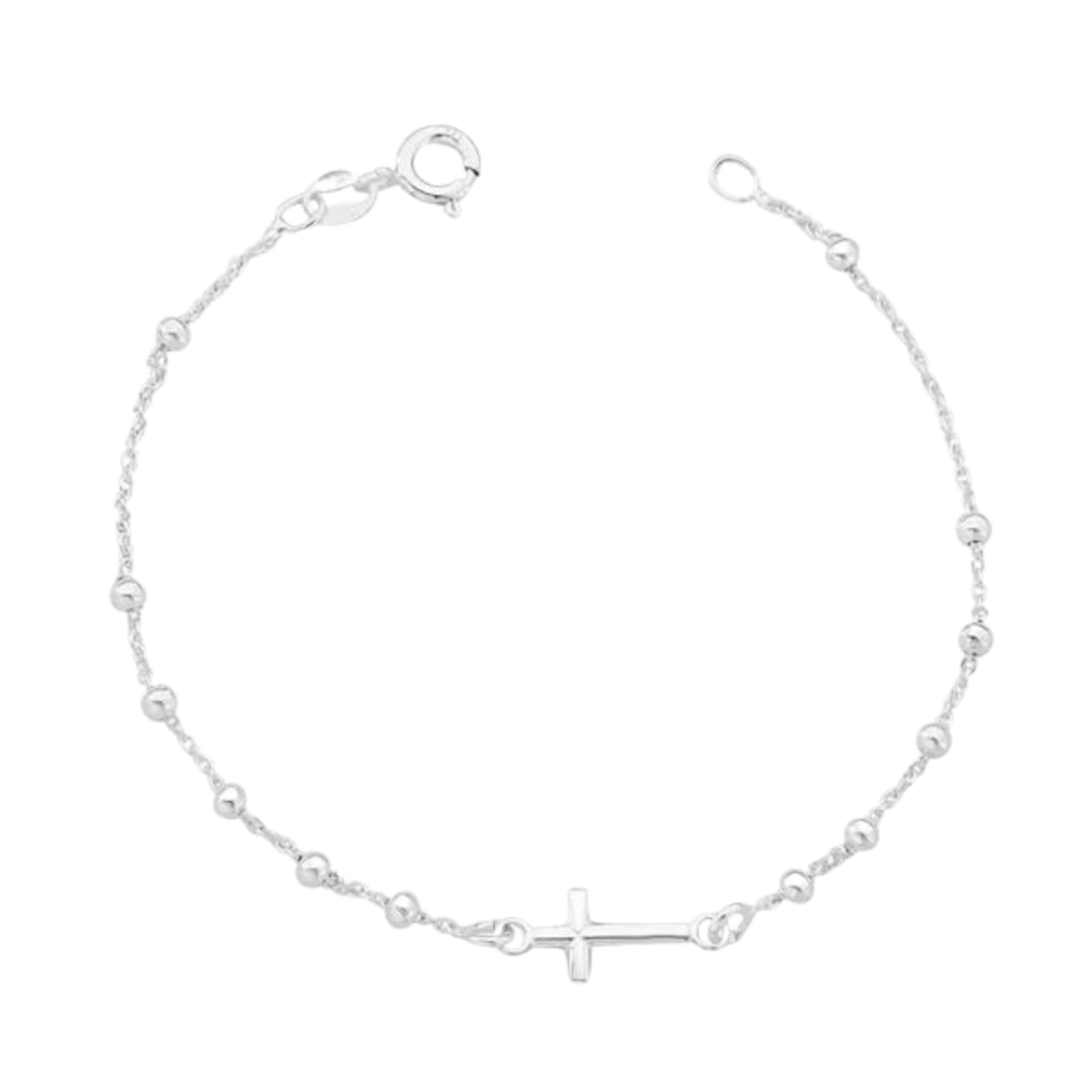 Pulseira Feminina Cruz Com Bolinhas Prata 925 Legítima