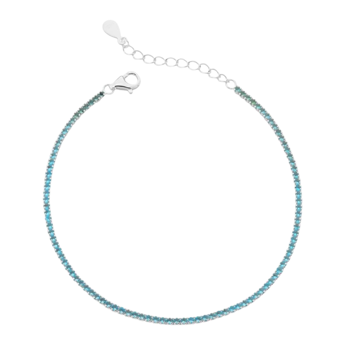 Pulseira Riviera Azul Claro de 1,5mm de espessura é uma joia deslumbrante, confeccionada em Prata 925 legítima com acabamento prata branca.