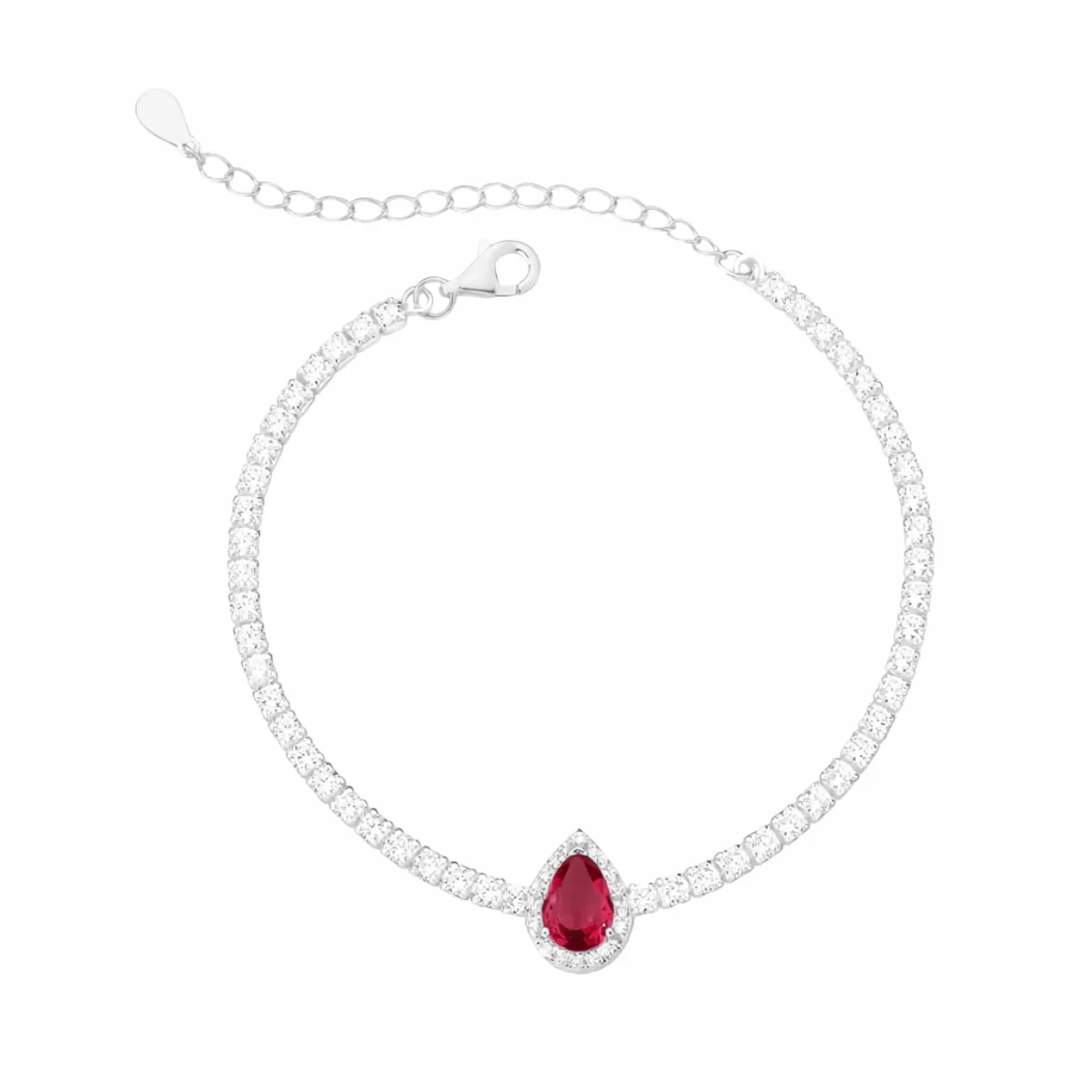 A Pulseira Riviera Gota Rosa é uma joia deslumbrante, confeccionada em Prata 925 legítima com acabamento prata branca e pingente em formato de gota com zircônia.